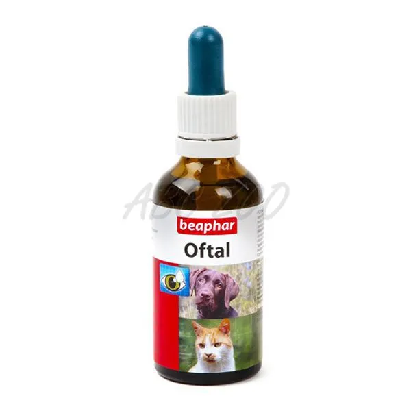 Očné kvapky Beaphar Oftal na ošetrenie očí psov, mačiek a ostatných malých zvierat - 50 ml.