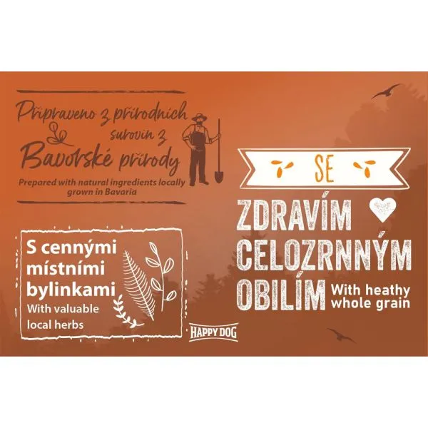 Zdravá celozrnná zmes s hovädzím mäsom a ľahko stráviteľnou ryžou pre dospelé psy s normálnou potrebou energie - Happy Dog Natur-Croq RIND & REIS.