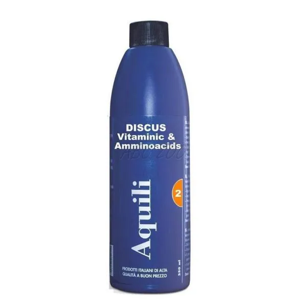 Tekutý prípravok na doplnenie aminokyselín a multivitamínov v akváriu - použitie špeciálne pre Discusy. Obsahuje vitamíny: A,D,E,C,B, folic acidy, biotine, amino acidy a jód.