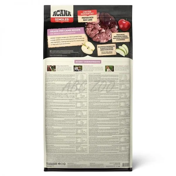 ACANA Grass-Fed Lamb je biologicky vhodné, monoproteínové krmivo pre citlivé psy všetkých plemien a veľkostí. Krmivo obsahuje 50% jahňacieho mäsa z voľného chovu a 50% ovocia, zeleniny a bylín.