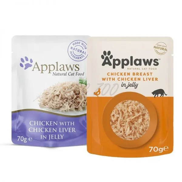 Applaws Chicken Breast with Chicken Liver in Jelly je prémiové prírodné krmivo v kapsičke pre mačky, vyrobené z vysokokvalitného mäsa z kuracích pŕs a pečene v lahodnom želé.