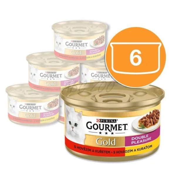 Gourmet Gold konzerva pre mačky hovädzie, kura 6x85 g