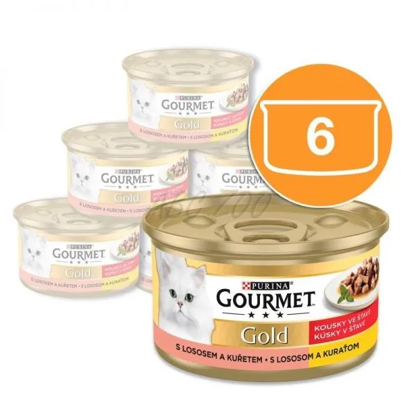 Gourmet Gold konzerva pre mačky losos, kura 6x85 g
