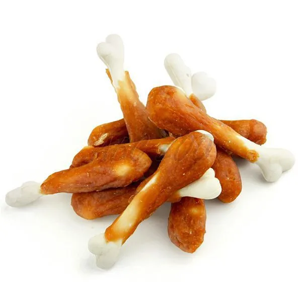 Pochúťka pre psov v tvare kuracieho stehna s kalciovou kosťou. Viac detailov