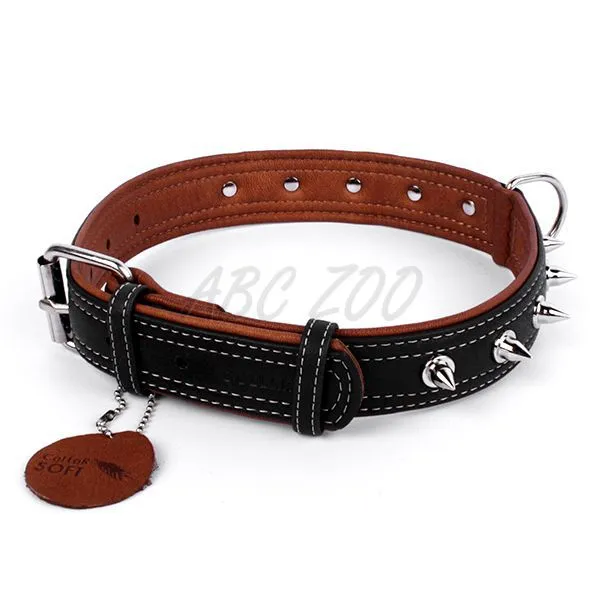 Kožený obojok SOFT v čiernohnedej farbe s kovovými ostňami, určený pre psov.
