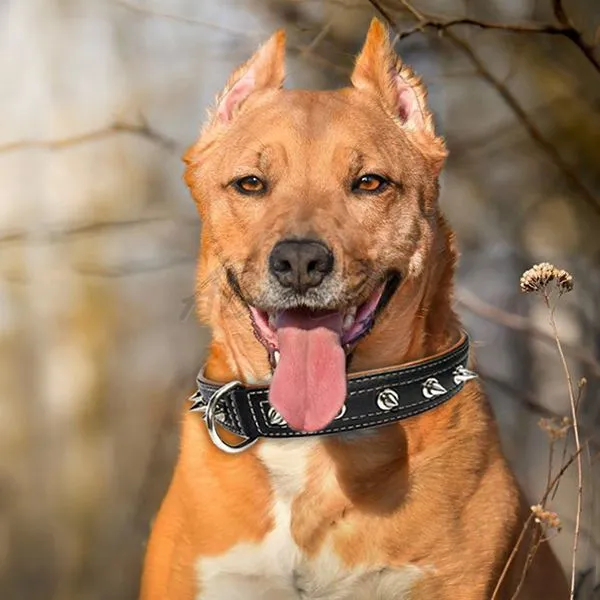 Ručne šitý a vyrábaný vysoko kvalitný dvojvstvový obojok s kovovými ostňami. Obojok je vyrobený z prírodnej veľmi jemnej kože. Je vhodný pre všetky typy psov ale najmä pre jedince s citlivou alebo kožou alergickou na nylon.
