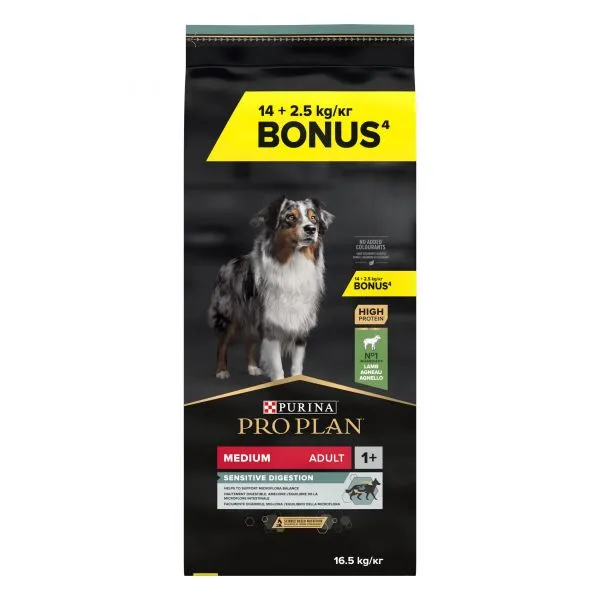PRO PLAN Medium Adult Sensitive Digestion granule pre psov jahňacie 14 kg + 2,5 kg