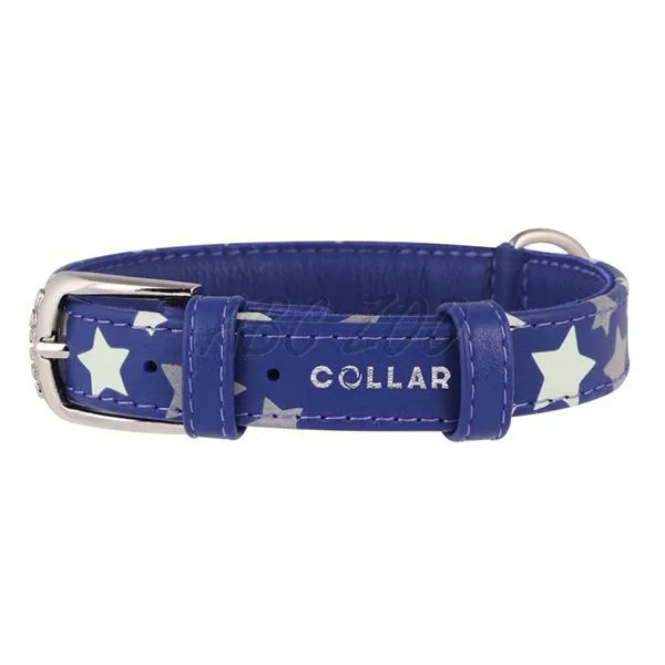 Kožený obojok je jedinečný tým, že obsahuje kombináciu reflexných a v tme svietiacich - fosforeskujúcich hviezdičiek. Je šitý z dvojitej vrstvy kože.