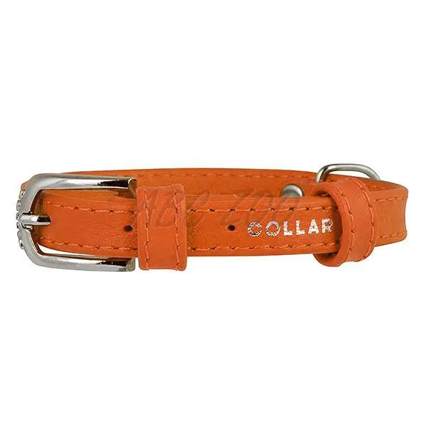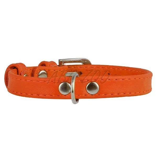 Plochý kožený obojok oranžový 19 - 25cm, 9mm