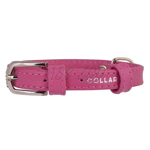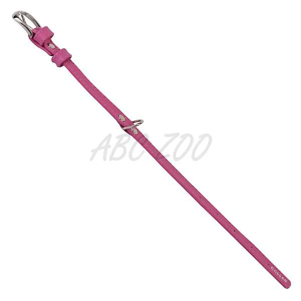 Ružový kožený obojok pre mini a malé plemená psov, s dĺžkou 21 - 29cm a šírkou 12mm.