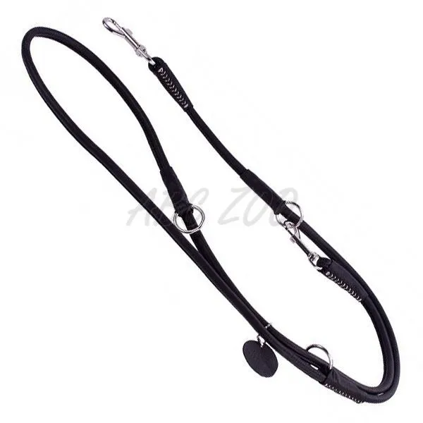 Ručne šité, okrúhle vodítko čiernej farby z prírodnej kože s možnosťou nastavenia až troch dĺžok. Viac detailov