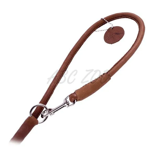 Ručne šité, okrúhle vodítko hnedej farby z prírodnej kože s možnosťou nastavenia až troch dĺžok. Viac detailov