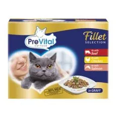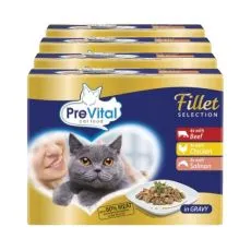 PreVital Fillet Selection Kapsička hovädzie/kura/losos v omáčke 48 x 85 g