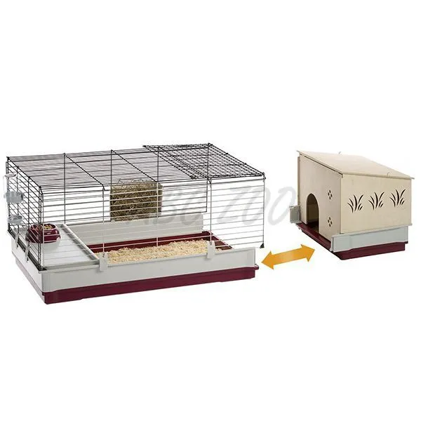 Klietka ponúka dostatok miesta aj vďaka oddelenému priestoru, ktorý možno využiť ako miesto na hniezdenie a rozšíriť tak priestor o 40 cm. Ku klietke sa dá pripojiť drevený domček, v ktorom vaše zvieratko nájde pokoj na oddych a súkromie. Domček sa ľahko udržiava a čistí vďaka otváracej streche, ktorá je vybavená kovovým hákom na zatváranie.