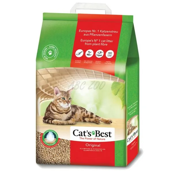 Cat's Best Original  je hrudkujúca podstielka zo 100% rastlinnej vlákniny. Extra vysoká absorpcia vlhkosti a výrazne menší objem odpadu.