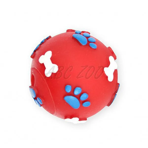 Vinylová lopta pre psov s kostičkami a labkami, červená - 6cm