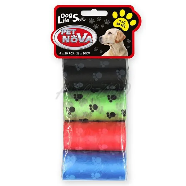 Náhradné sáčky na psie odpadky 4 x 20 ks, farebné s potlačou labiek.