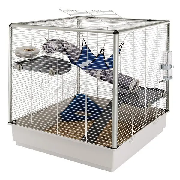 Klietka pre fretku FURET XL je obzvlášť priestranná s lakovanou konštrukciou z drôteného pletiva, na bokoch sú plastové rámy. Na streche a na prednej strane sú veľké otváracie dvere, ktoré umožňujú prístup pre jednoduchšie čistenie.