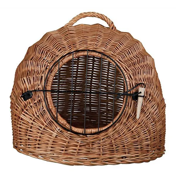 Prútený pelech so železnými dvierkami a rukoväťou v oblom tvare.