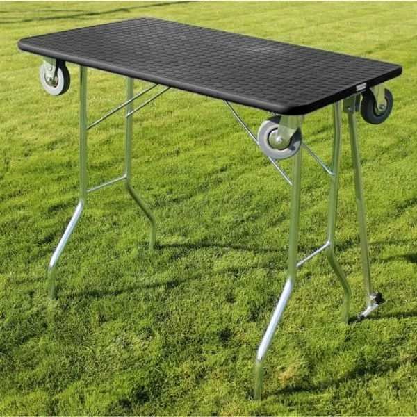 Stôl trimovací skladací s kolieskami 110 x 55 x 60 cm, čierny