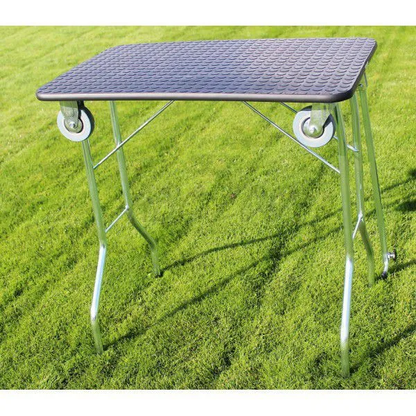 Skladací stôl s kolieskami na trimovanie a úpravu srsti väčších psov.