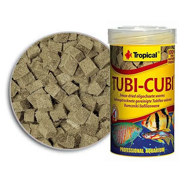 Lyofilizované očistené bahnenky (nitenky) pre všetky akváriové ryby vo forme kociek.