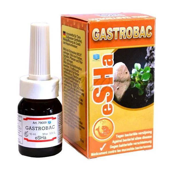 Prípravok eSHa GASTROBAC je bezpečný pre ryby, rastliny, krevety a užitočné baktérie, pri doporučenom dávkovaní. Toxický pre slimáky. Pri žiadnom alebo nedostatočnom výsledku vymeňte 50% vody a liečbu zopakujte. eSHa GASTROBAC je vhodný aj ako dezinfekcia novo zakúpených rastlín.