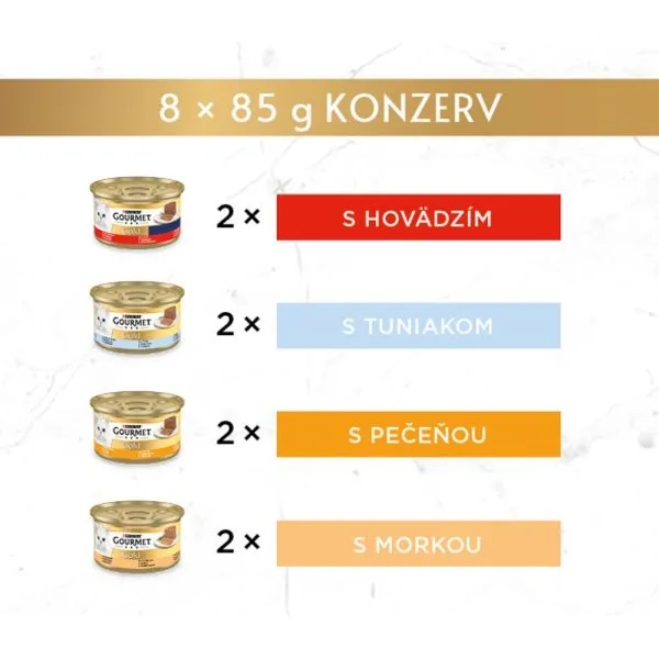 Gourmet Gold konzervy pre mačky tuniak, pečeň, morka, hovädzie paštéta 8x85 g