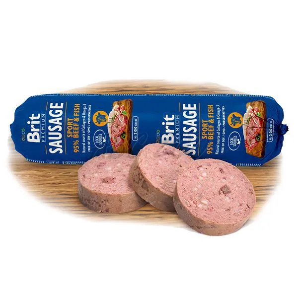 Mäsová saláma plná hovädzieho mäsa a rýb pre psy každého veku.