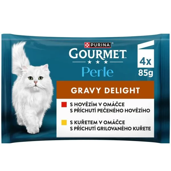 Gourmet Perle Gravy Delight kapsičky pre mačky kura, hovädzie v omáčke 4x85 g