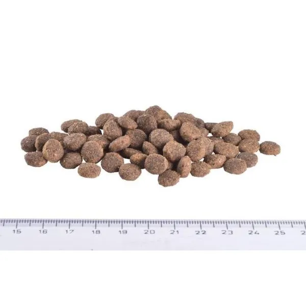 Analytické zložky: proteín 26%, tuk 12%, vlhkosť 10%, popol 5,5%, vláknina 8,5%, vápnik 1,1%, fosfor 0,9%, omega-3 mastných kyselín 1,5%, omega-6 mastných kyselín 1,3%