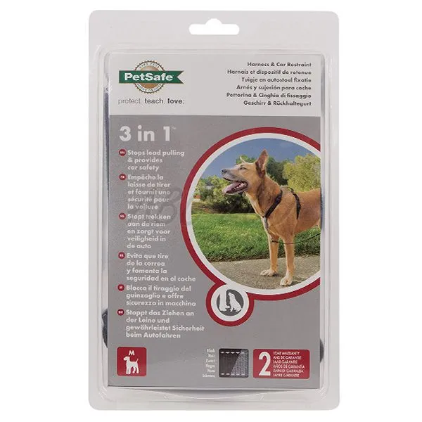PetSafe 3in1 - univerzálny postroj využiteľný ako klasický postroj, postroj proti ťahaniu a postroj do auta - veľkosť "M" pre stredné plemená.