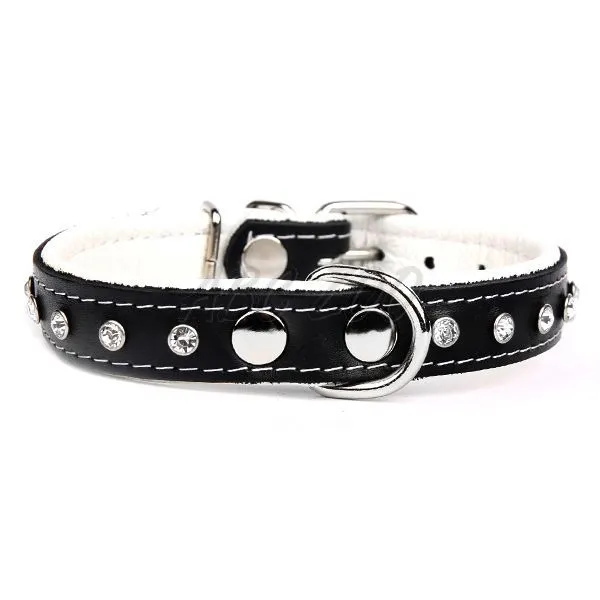 Obojok pre psy čierno - bielej farby vyrobený z kvalitnej kože so striebornými kryštálmi.
