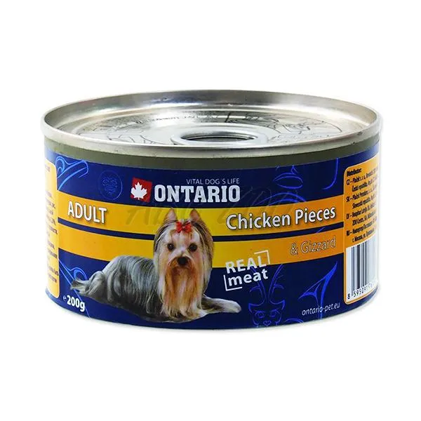 Konzerva ONTARIO Adult pre psa, kuracie kúsky + žalúdky, 200g