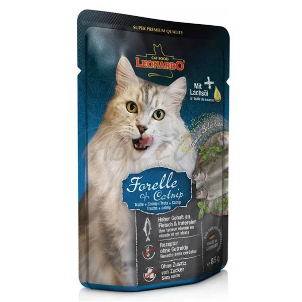 Kapsička Leonardo pstruh a kocúrnik 85 g