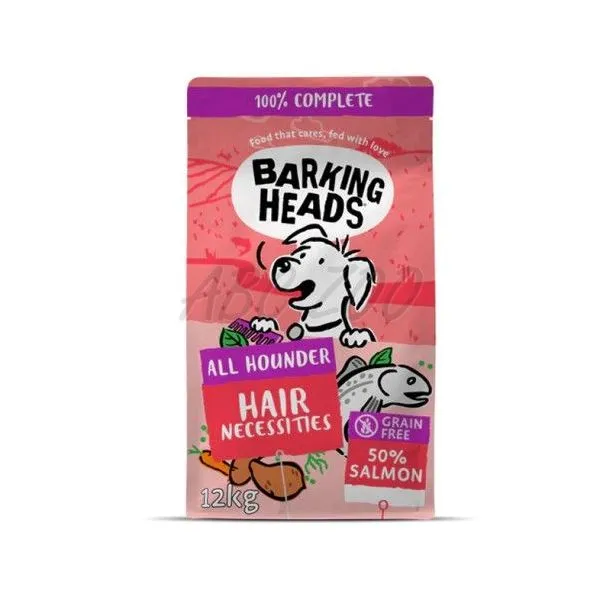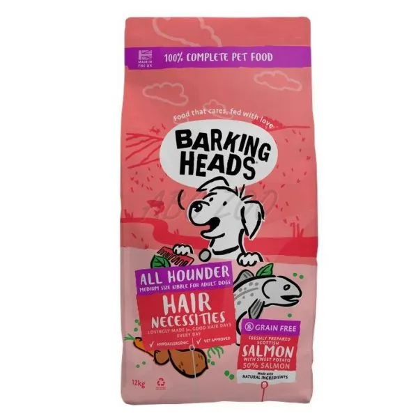 Barking Heads All Hounder Hair Necessities je kompletné suché krmivo bez obilnín s lososom určené pre dospelé psy.