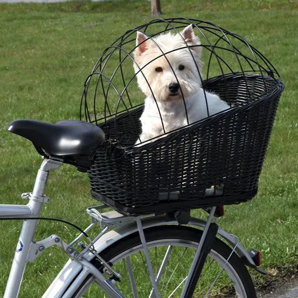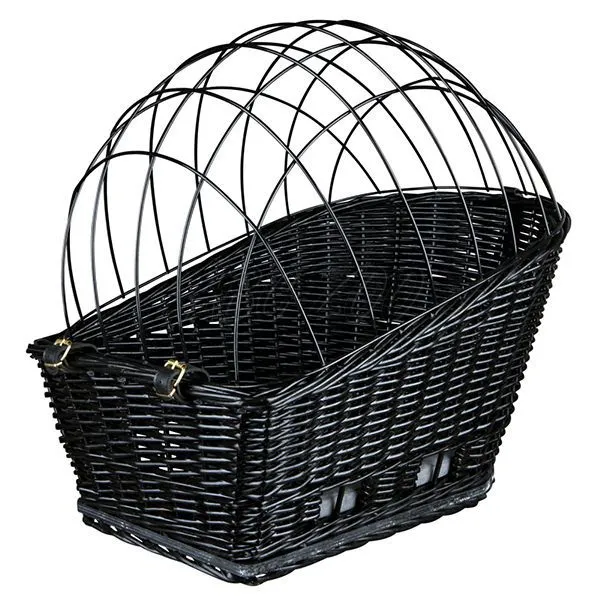 Prepavný košík na bicykel pre psov z kvalitného vŕbového prútia v čiernej farbe so zamykacou mriežkou. Viac detailov