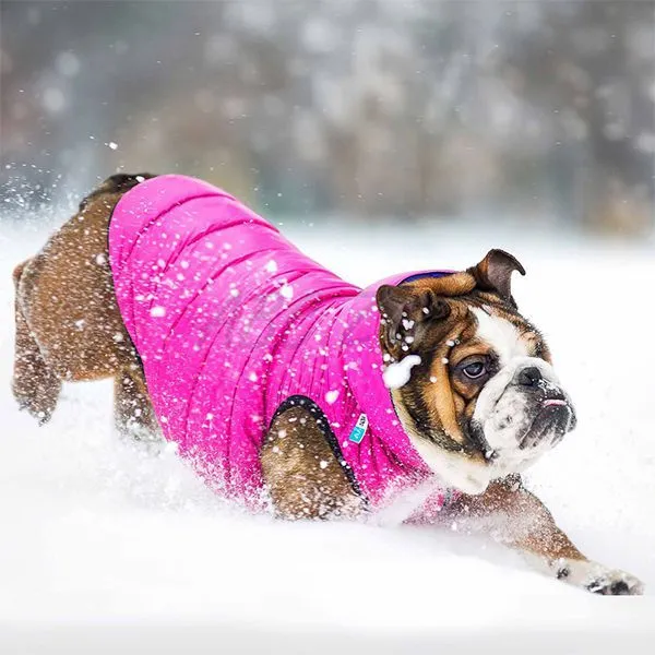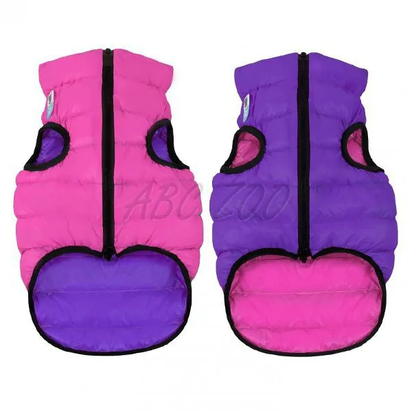 Ľahká, teplá obojstranná vesta pre malé plemená psov v fialovo-ružová farbe.