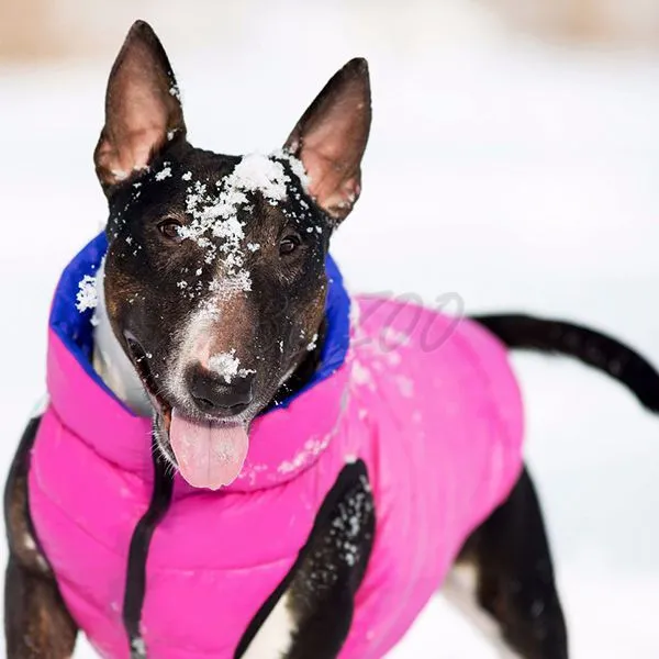 Ľahká, teplá obojstranná vesta vo fialovo-ružovej farbe, ideálna pre malé plemená psov so širším krkom a hrudníkom.