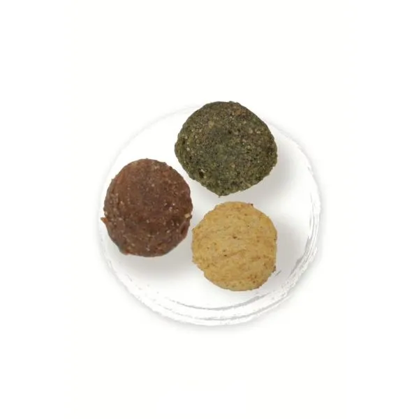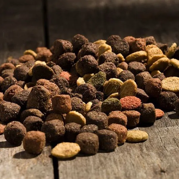 Zloženie: sušený hydinový proteín, pšeničná múka, celozrnná kukurica, celozrnná pšenica, kukuričná múka, ovsená múka, celozrnný jačmeň, ryžová múka, hydinový tuk, mäsová múčka, hovädzí loj, rybia múčka, pečeňový hydrolyzát, sušený hemoglobín, oškvarky, sušené cukrovarské rezky (odcukrené), sušená jablková dreň (0,6 %), sušené droždie (0,4 %), sušený tvaroh (0,3 %), chlorid sodný, špenátová múka (0,08 %), sušená lucerna (0,08 %), sušený zelený ovos, sušená slnečnica, sušená žerucha, sušený petržlen, sušená mrkva (0,04 %), sušená cvikla, ryžová múka (fermentovaná), zelené byliny (celkom 0,3 %)