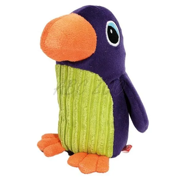 Plyšová hračka pre psa v podobe tukana, s píšťalkou vo vnútri.