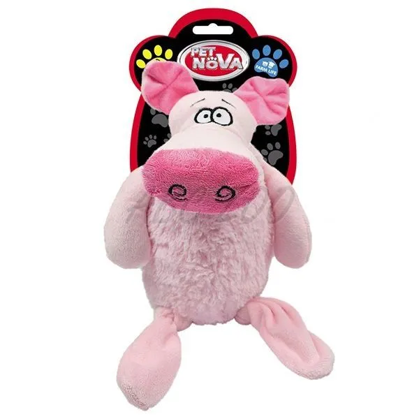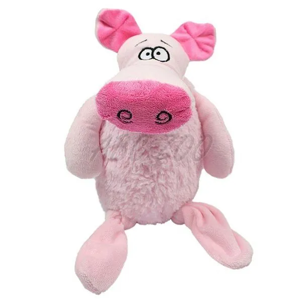 Plyšová hračka pre psa v podobe prasiatka, s píšťalkou vo vnútri.