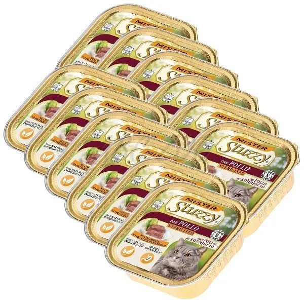 Krmivo pre sterilizované mačky vo forme vaničky s kuracím mäsom.