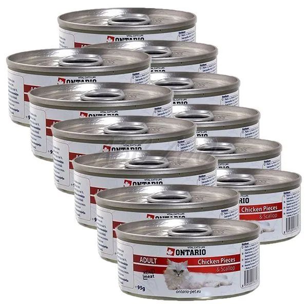 ONTARIO Cat Chicken Pieces + Scallop 12 x 95 g