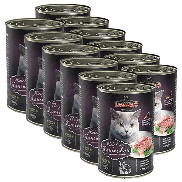 Konzerva pre mačku Leonardo - Králik 12 x 400g