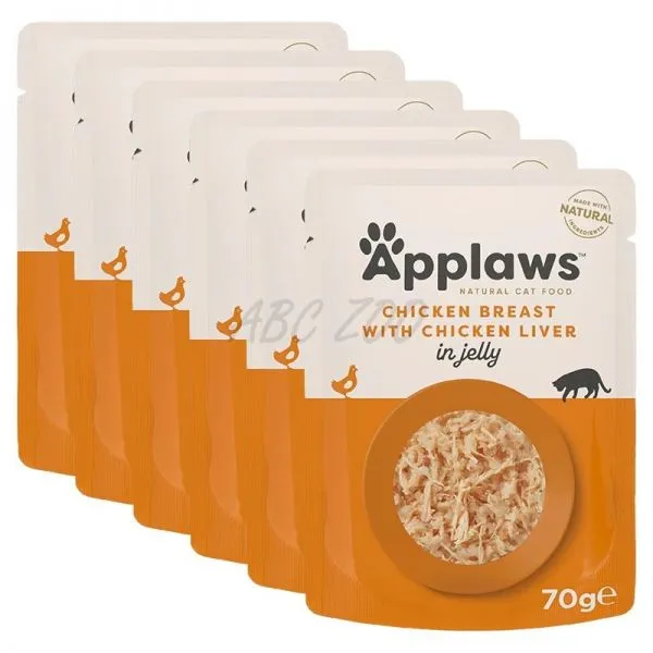 Applaws Chicken Breast with Chicken Liver in Jelly je prémiové prírodné krmivo v kapsičke pre mačky, vyrobené z vysokokvalitného mäsa z kuracích pŕs a pečene v lahodnom želé.
