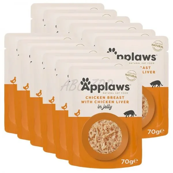 Applaws Chicken Breast with Chicken Liver in Jelly je prémiové prírodné krmivo v kapsičke pre mačky, vyrobené z vysokokvalitného mäsa z kuracích pŕs a pečene v lahodnom želé.