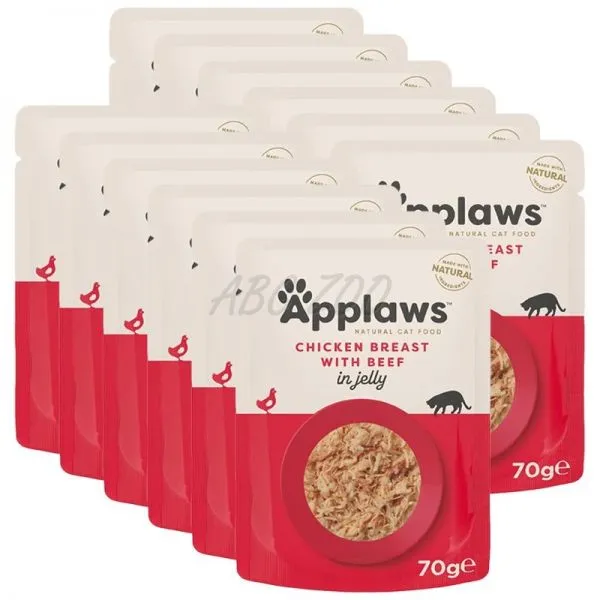 Applaws Chicken Breast with Beef je prémiové prírodné krmivo v kapsičke pre mačky, vyrobené z vysokokvalitného kuracieho a hovädzieho mäsa v lahodnom želé.