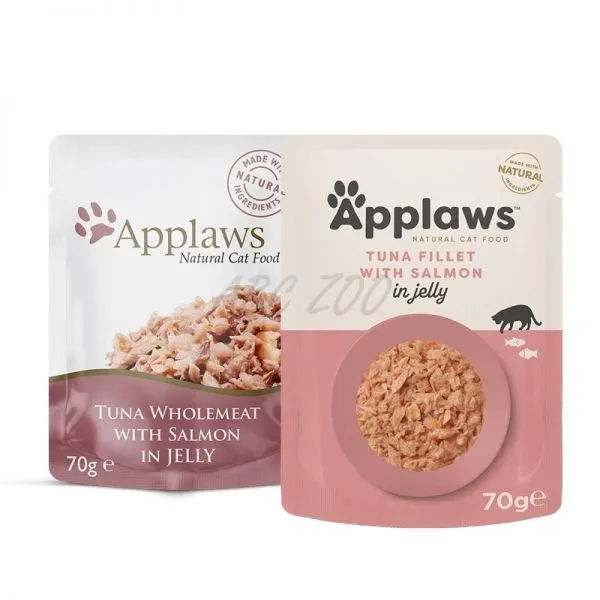 Applaws Tuna Fillet with Salmon in Jelly je prémiové prírodné krmivo v kapsičke pre mačky, vyrobené z vysokokvalitného mäsa z tuniaka a lososa v lahodnom želé.