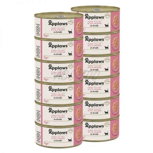 Applaws Konzerva pre mačky s tuniakom a krevetami vo vývare 12 x 70 g